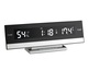 Modern digitális ébresztőóra inverz kijelzővel TFA 60.2025.01 nagy fehér LED-ekkel mutatja az időt és gombnyomásra a belső hőmérsékletet vagy a változó kijelzőt.