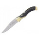Sima élű AISI 420 rozsdamentes acél pengéje szatén bevonattal rendelkezik, a pengén egy bevágással nyílik, és egy Backlock rögzíti.