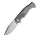 Sima élű CPM-S35VN acél pengével, Stonewash bevonattal, hüvelykujj gombbal nyitható és gombzárral rögzíthető.