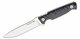 Masszív Tanto típusú sima élű pengéje japán AUS-10 acélból készült, Blackwash bevonattal, amelyet a korrózióra való érzékenysége miatt karban kell tartani.